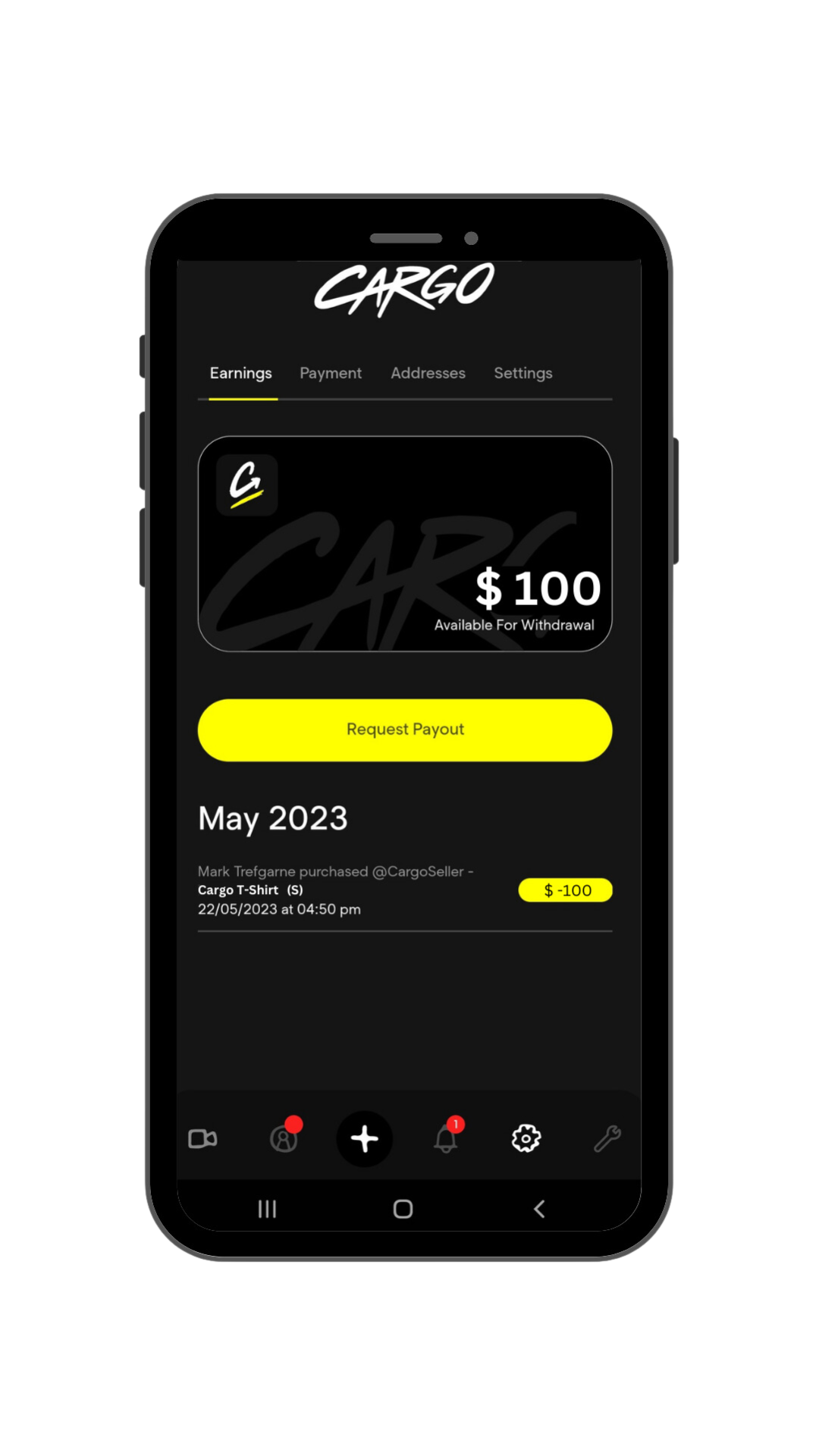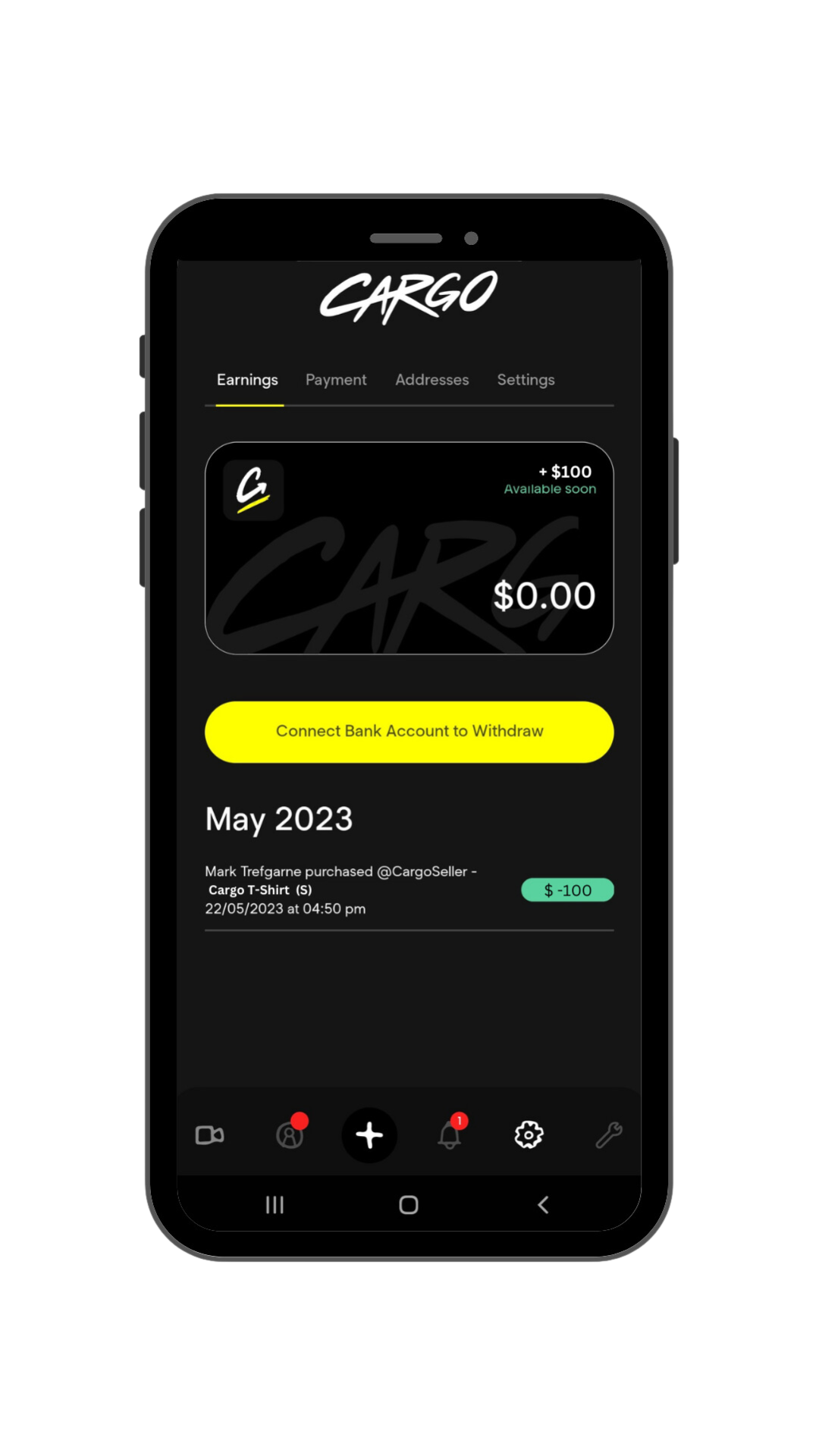 The Cargo Wallet serves as a centralized hub within the app where users can accumulate their earnings.
