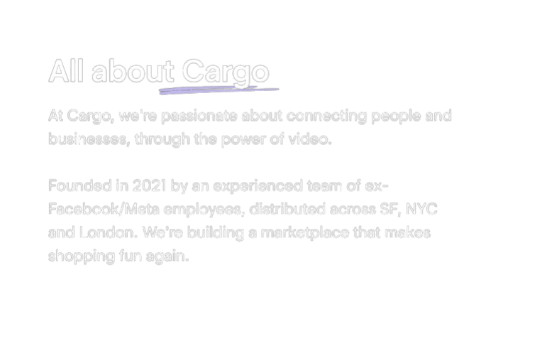 Celebrating individuality and style, Cargo is here to make shopping fun again. Immerse yourself in a video-based marketplace, where you can effortlessly explore an endless feed of captivating videos, uncovering remarkable pieces that resonate with your unique style. Hear the fascinating stories behind their brands, and easy shipping.